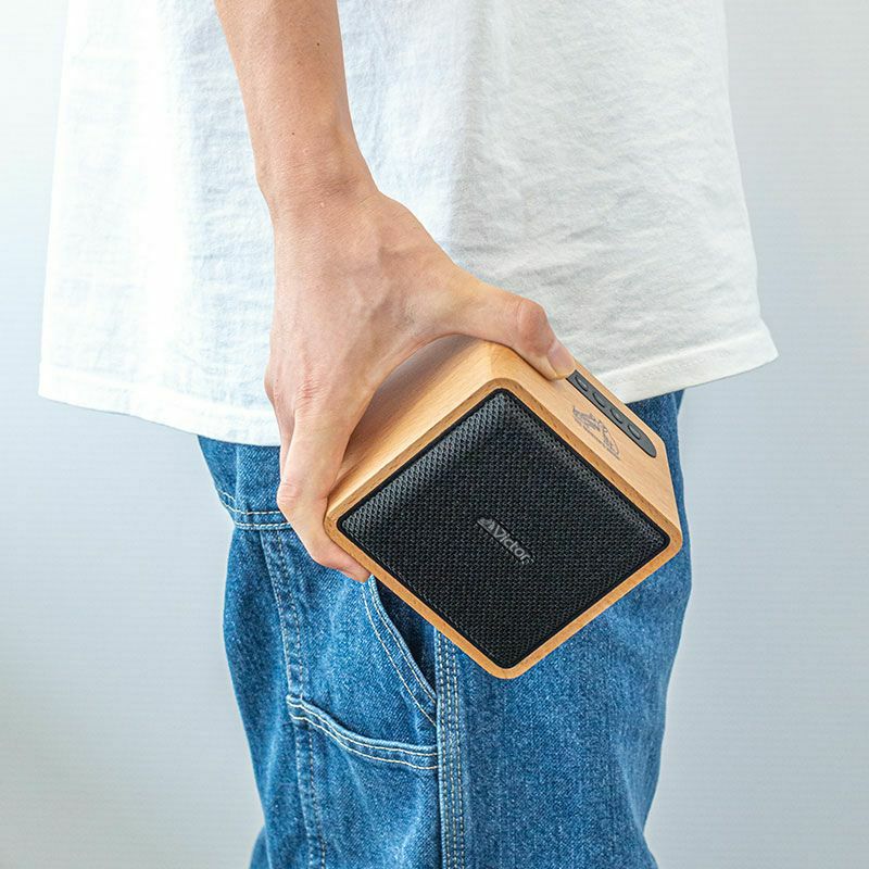片手で持てるほどコンパクトなので、リビングに寝室にどこへでも持ち運んで、本格サウンドを楽しめます。音楽だけでなく映画やライブ映像も、より臨場感を味わえます。天然木を使用したウッドデザインで、インテリアになじみ、安らぎの空間演出します。