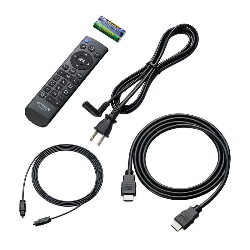 付属品 リモコン、単4形乾電池×2(リモコン動作確認用)、電源コード、 HDMIケーブル×1、光デジタル音声ケーブル×1、取扱説明書