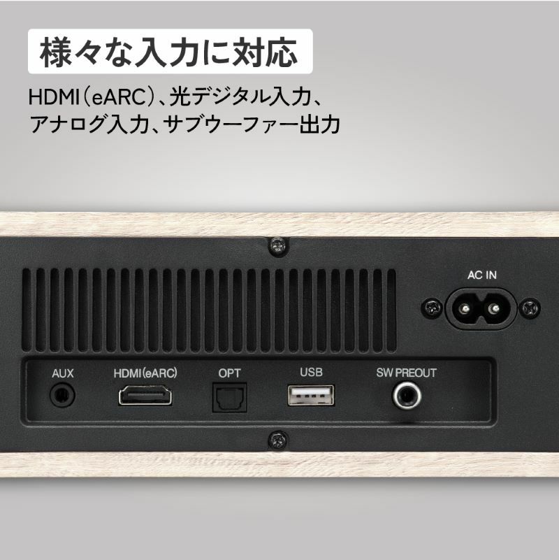 ・さまざまな入力に対応…HDMI(eARC)、光デジタル入力、アナログ入力、USB入力、サブウーファー出力