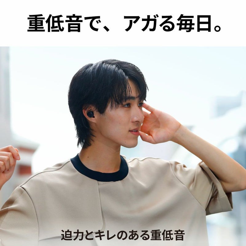 普通の完全ワイヤレスイヤホンのサイズ感に凝縮されたことで重低音×タフの個性がより強く輝く。そんなモデルの登場だ。