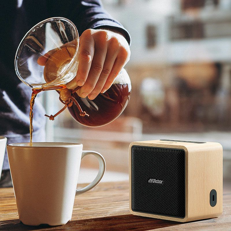 片手で持てるほどコンパクトなので、リビングに寝室にどこへでも持ち運んで、本格サウンドを楽しめます。音楽だけでなく映画やライブ映像も、より臨場感を味わえます。天然木を使用したウッドデザインで、インテリアになじみ、安らぎの空間演出します。
