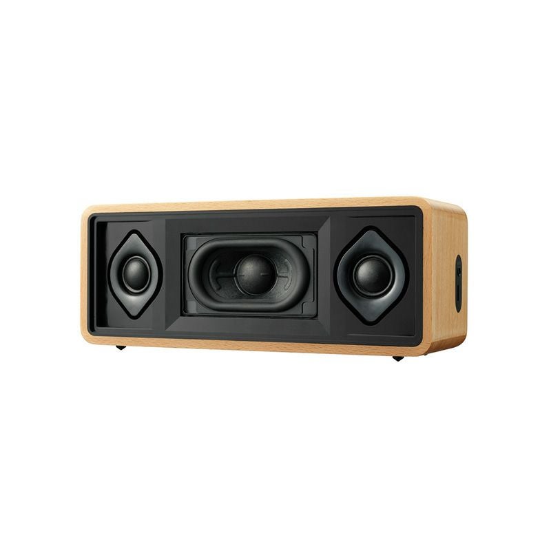 フロント部にウーファーと左右にシルクドームツイーター、リア部に大型パッシブラジエーターを搭載した2ウェイ4スピーカー構成で、クリアな中高域と重厚な低音のステレオサウンドを実現します。