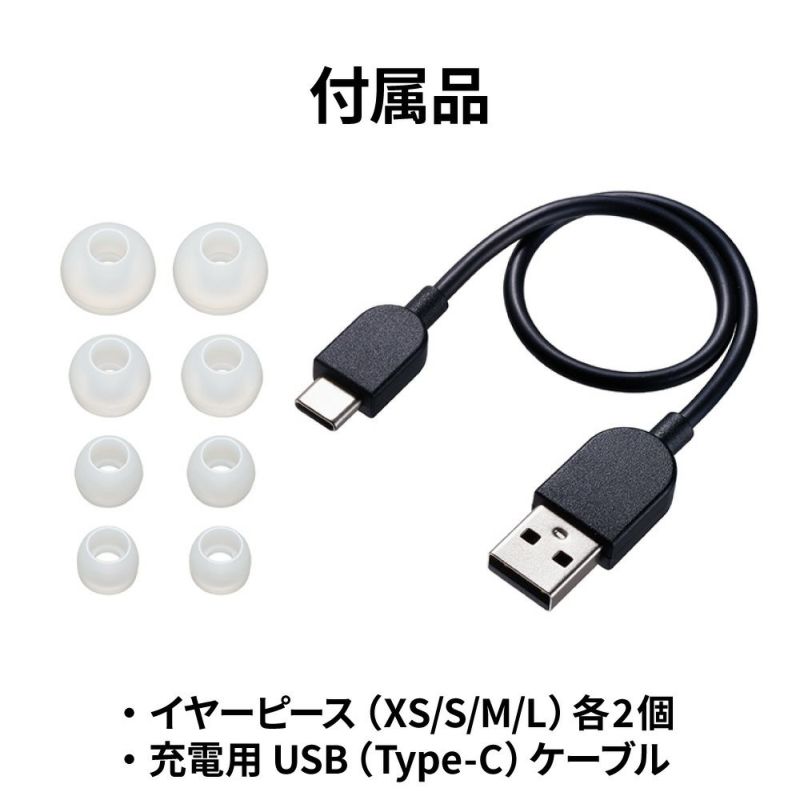 付属品 イヤーピース(XS/S/M/L)、ステッカー、充電用USBケーブル、充電ケース