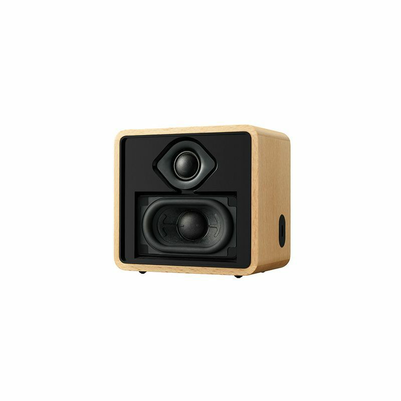 片手で持てるほどコンパクトなので、リビングに寝室にどこへでも持ち運んで、本格サウンドを楽しめます。音楽だけでなく映画やライブ映像も、より臨場感を味わえます。天然木を使用したウッドデザインで、インテリアになじみ、安らぎの空間演出します。