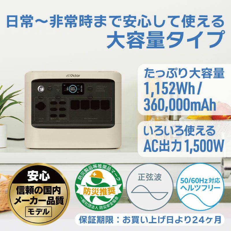 繰り返し充放電が可能な長寿命バッテリーとVictor独自のバッテリー経年劣化や事故を防ぐ設計により、コンセントは挿したままでもOK!