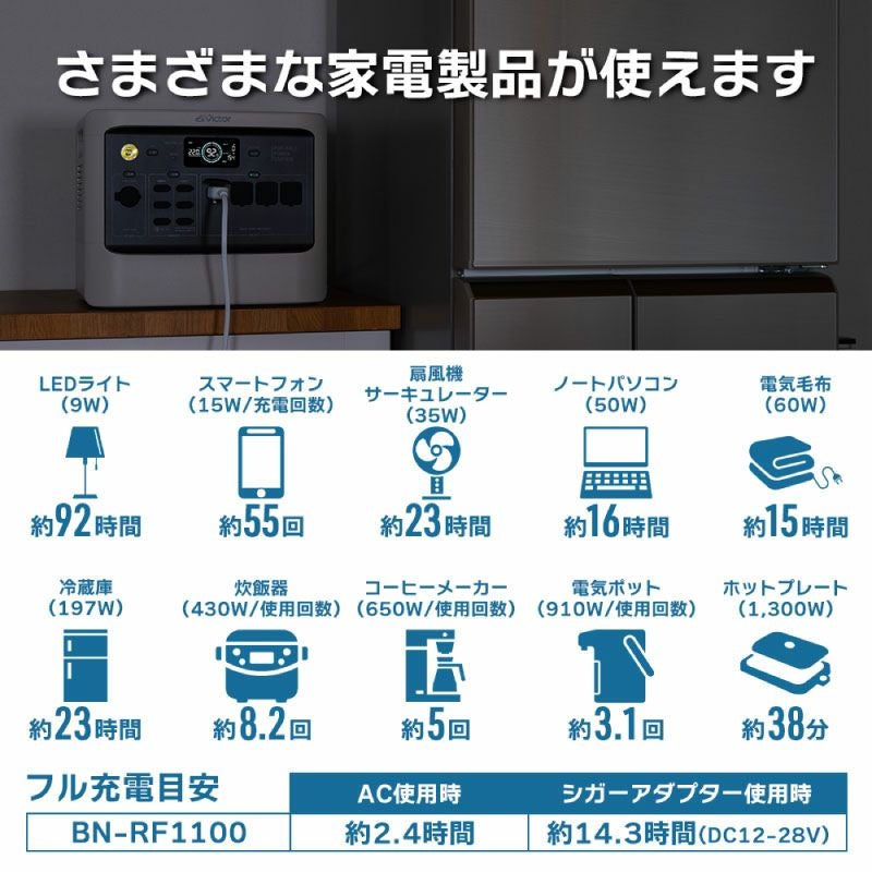 ポータブル電源(1,152Wh)と ソーラーパネル(100W)のセット BN-RF1100SSET2