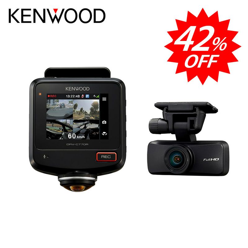 【アウトレット】360°撮影対応 2カメラドライブレコーダー DRV-C770R STARVIS搭載 SDカードメンテナンスフリー 大容量microSDカード対応