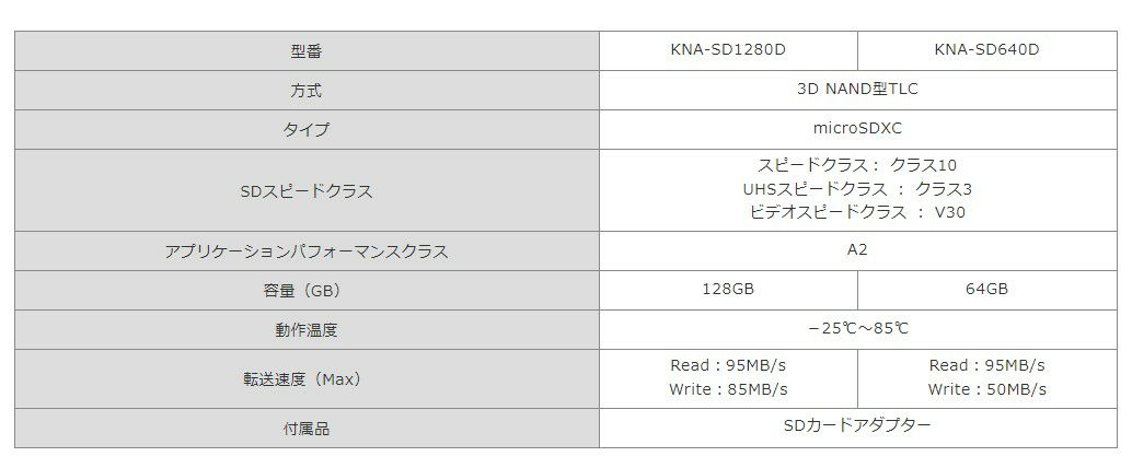 高耐久3D NAND型 TLC方式 microSDXCメモリーカード 128GB KNA-SD1280D