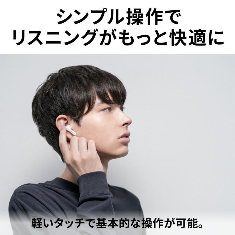 イヤーピースのいらない軽やかなつけ心地で耳を圧迫しないため、耳が痛くなりにくく快適!
