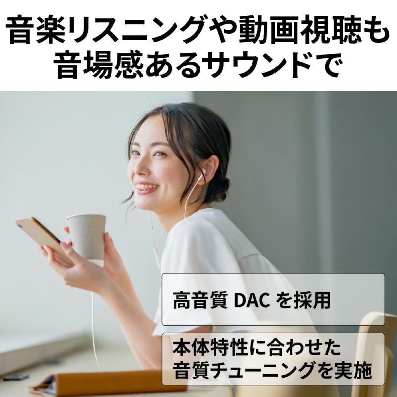 高音質DACを搭載しており、通話中に周囲のノイズを抑えてよりクリアな通話が可能。