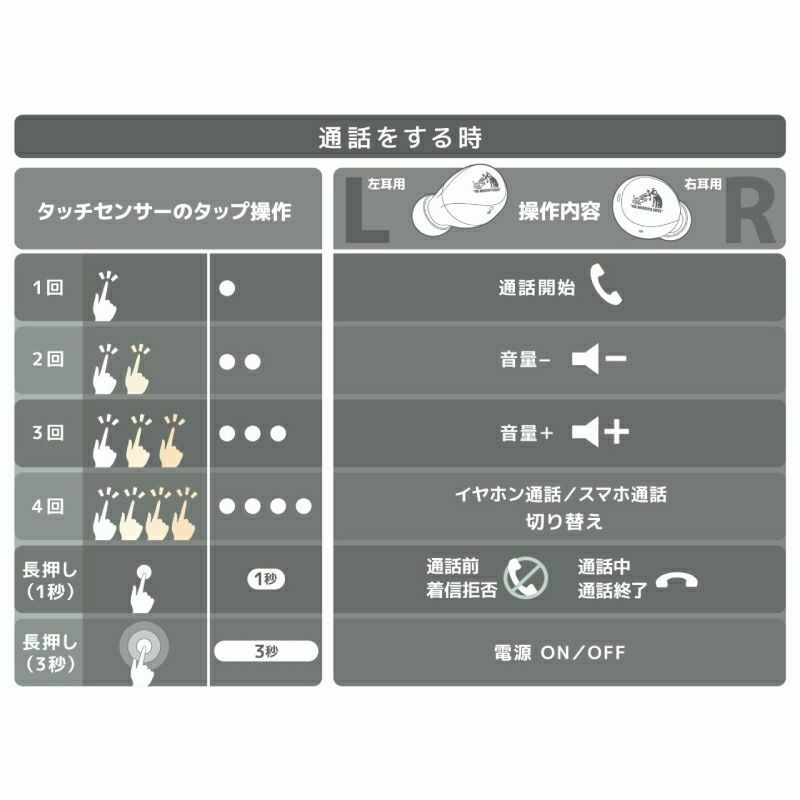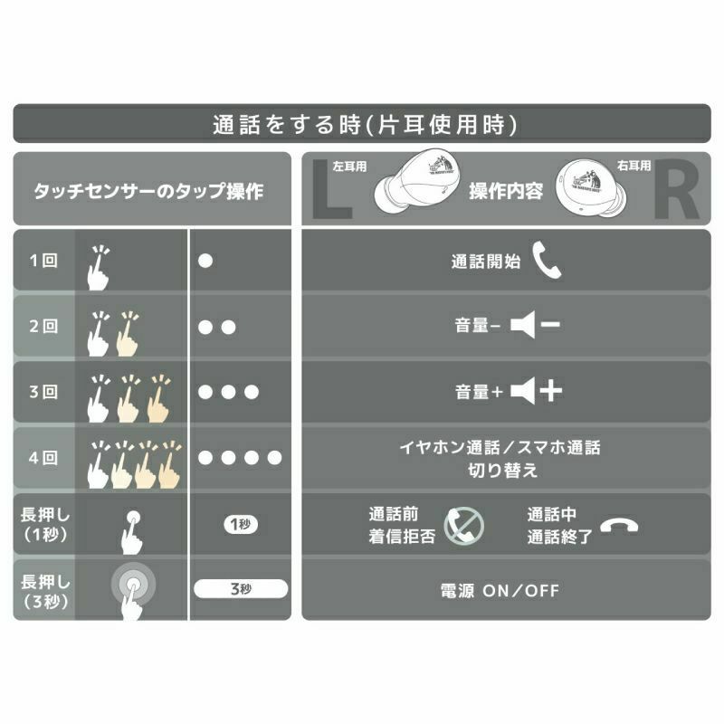 • ※2:片側使用の場合、イヤホン本体での操作に制限があります。