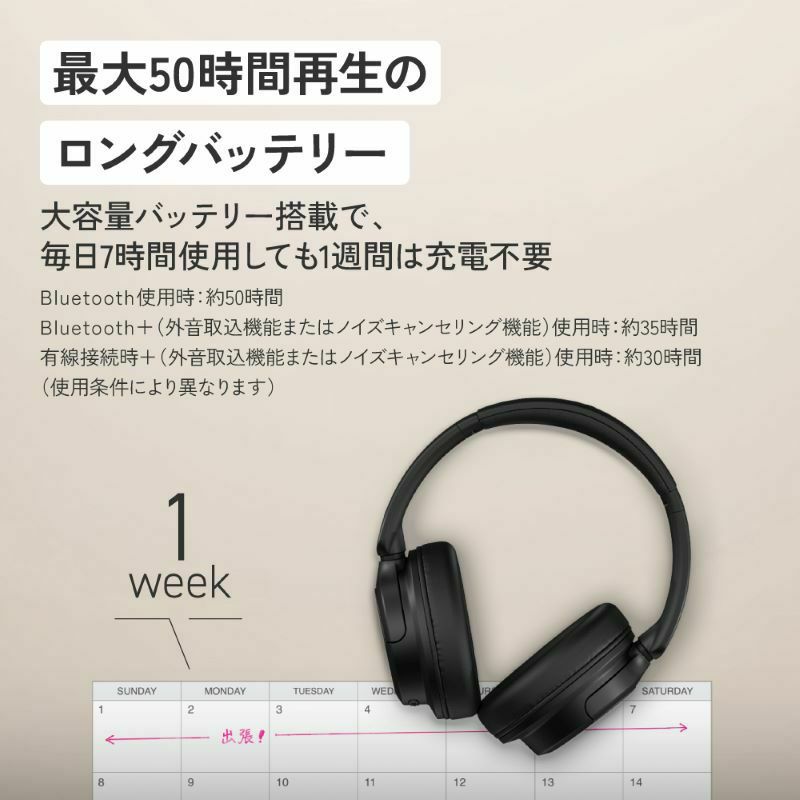 電池持続時間※3 約50時間(Bluetooth使用時)
