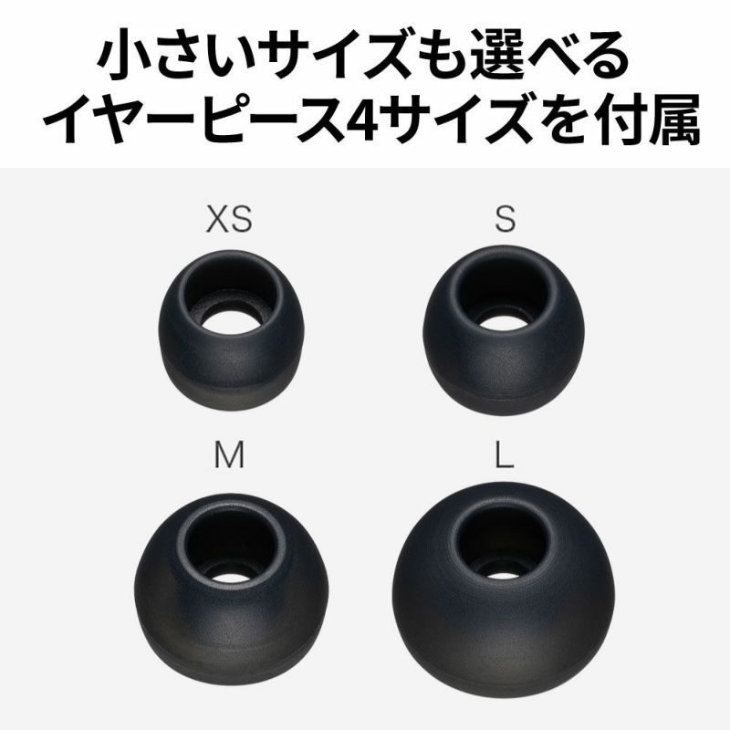 • イヤーピースはXS/S/M/Lの4サイズが付属し、幅広い耳のサイズにフィット