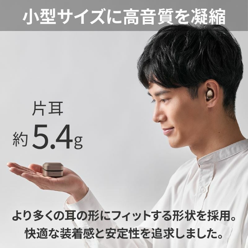 装着感は、大口径11mmの振動板サイズながら、大幅な小型・軽量設計に加え、多くの耳の形にフィットする形状を試行錯誤しました。