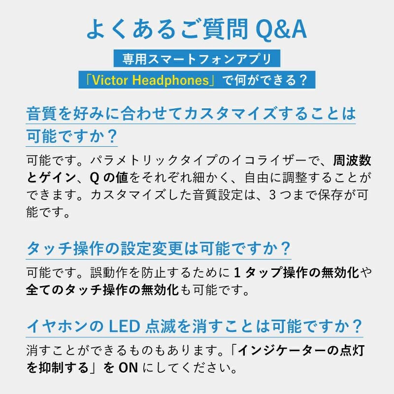本体ファームウェア、およびスマートフォンアプリ「Victor Headphones」のアップデートを提供開始しました。(詳しくはこちら