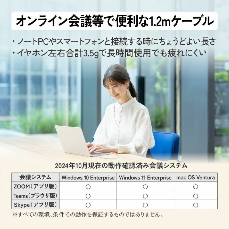 有線接続のため、音の途切れや遅延がほとんどなく、オンライン会議や学習はもちろん、動画視聴やゲームアプリなども快適に楽しめます。