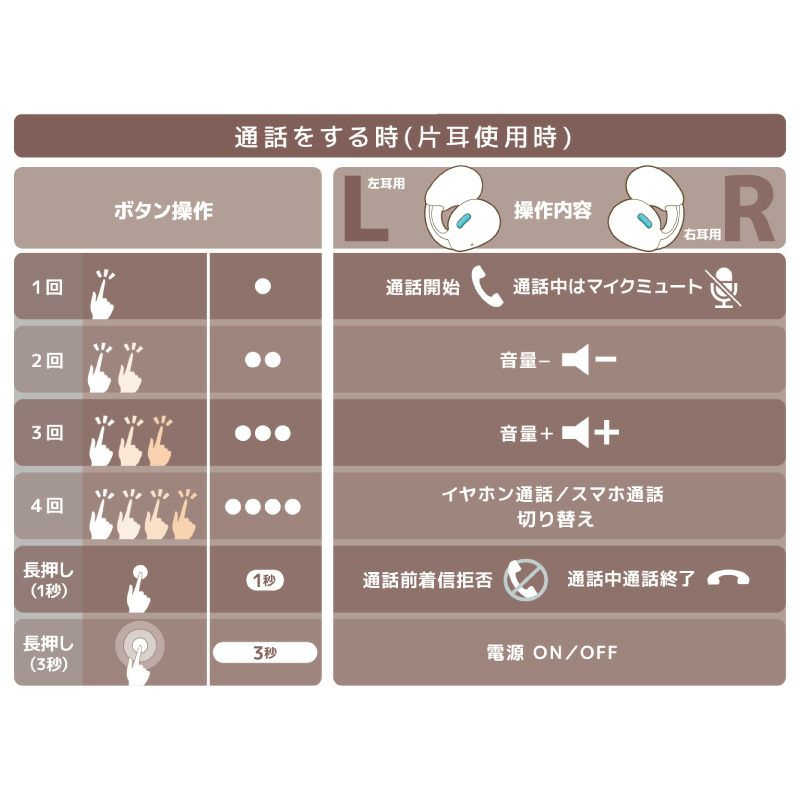 スマホとPCなど2台の機器に同時にBluetooth接続ができ、オンライン会議などに便利です。また、オンライン会議やハンズフリーでの通話ができるマイク搭載。本体L側のマイクミュートボタンで簡単にマイクのON/OFFができます。