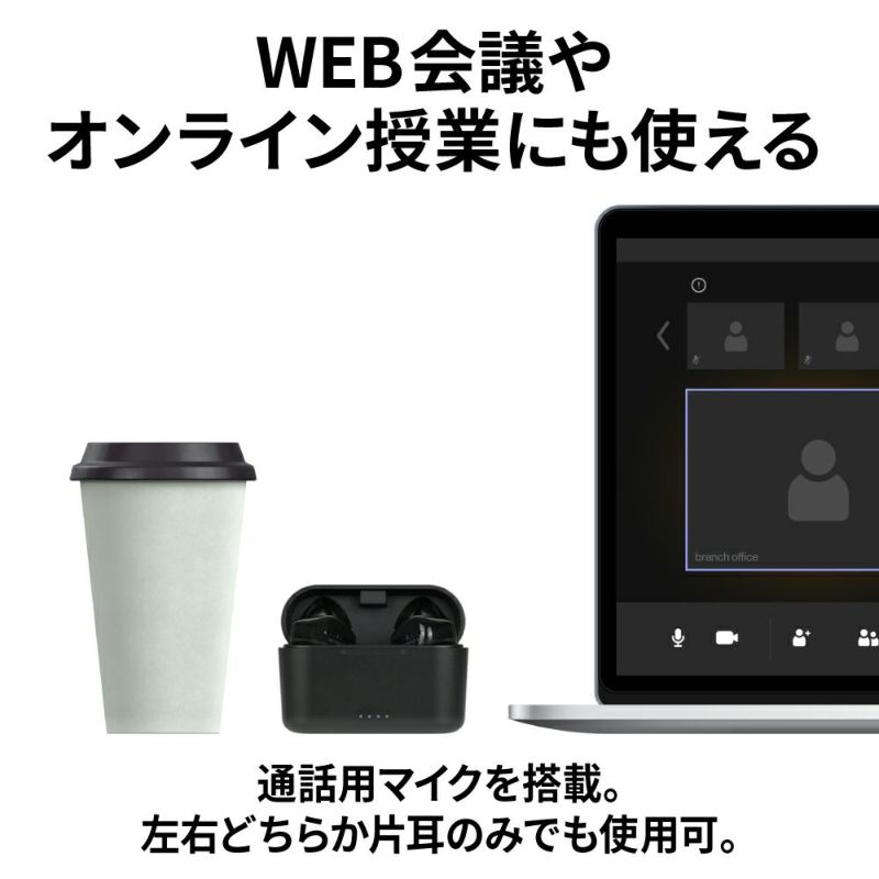 ハンズフリー通話だけでなく、オンライン会議にも便利なマイクを搭載。左右どちらも片方での使用が可能なので、片耳を開放して音楽を楽しめます。