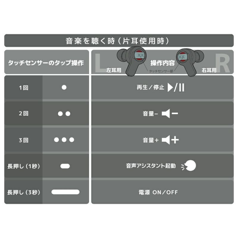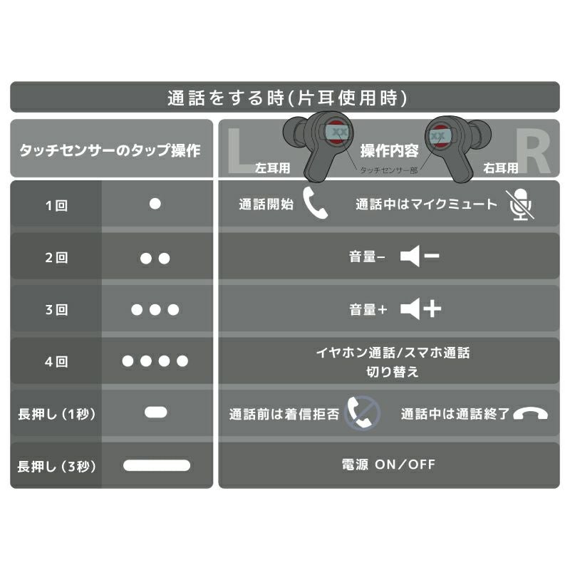 左右どちらでも片耳のみでの使用が可能。本体ワンタッチで行えるマイクミュート機能が便利です。内蔵マイク搭載によりオンライン通話やハンズフリー通話にも活躍します。