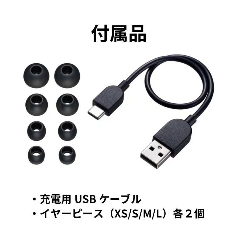 付属品 イヤーピース(XS/S/M/L)各2個、充電用USBケーブル、充電ケース