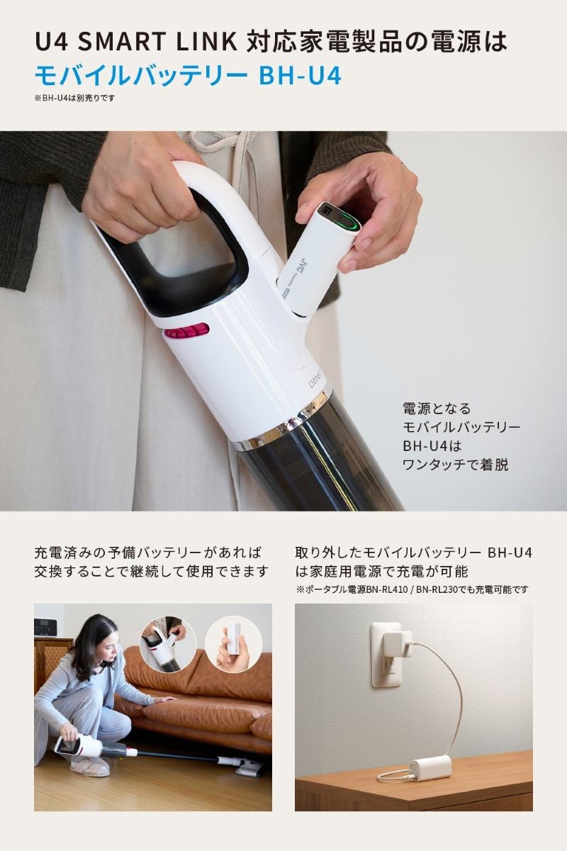 • U4 SMART LINK 対応製品。モバイルバッテリーBH-U4(※別売/1個使用)で駆動させることができます
