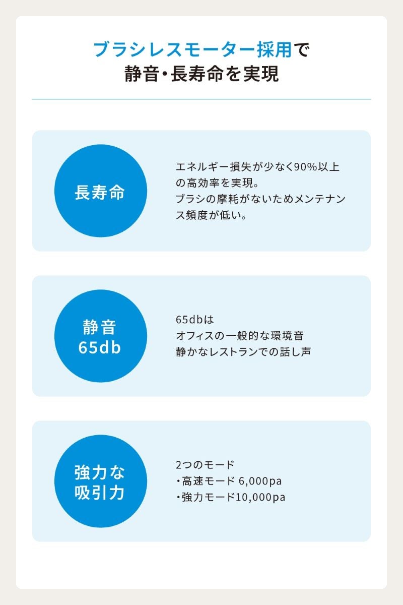 • ブラシレスモーター採用で、静音・長寿命を実現