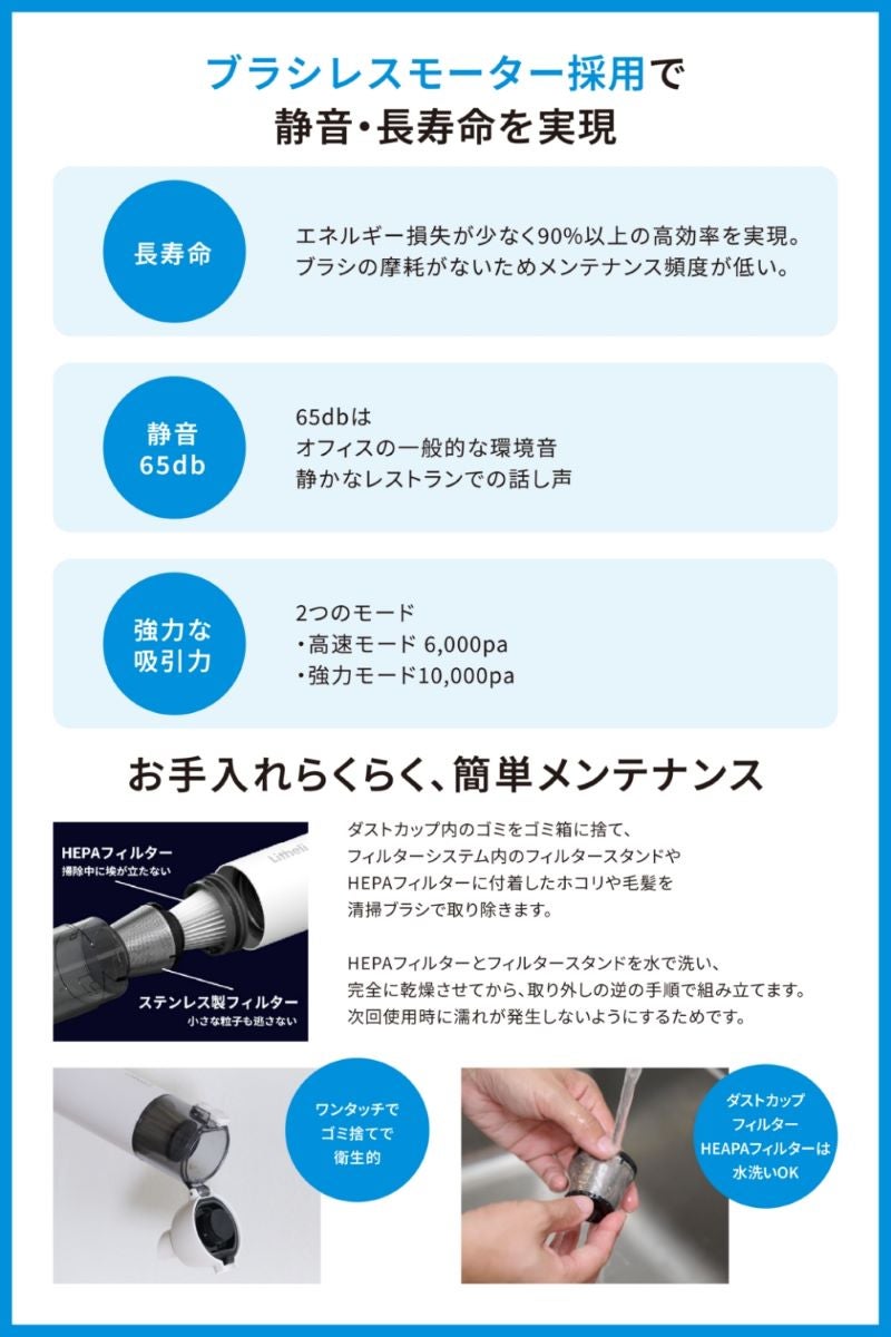 • ブラシレスモーター採用で、静音・長寿命を実現