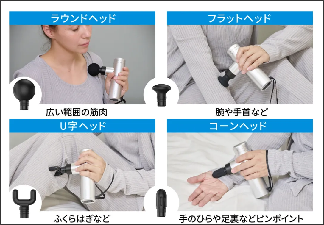 • 4種類のアタッチメントヘッドで身体の部位や用途に応じて使い分け