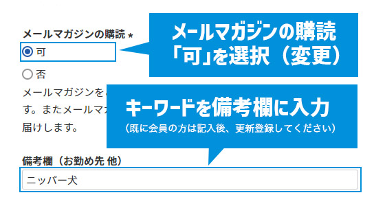 キーワード「ニッパー犬」と入れて会員登録するだけ!