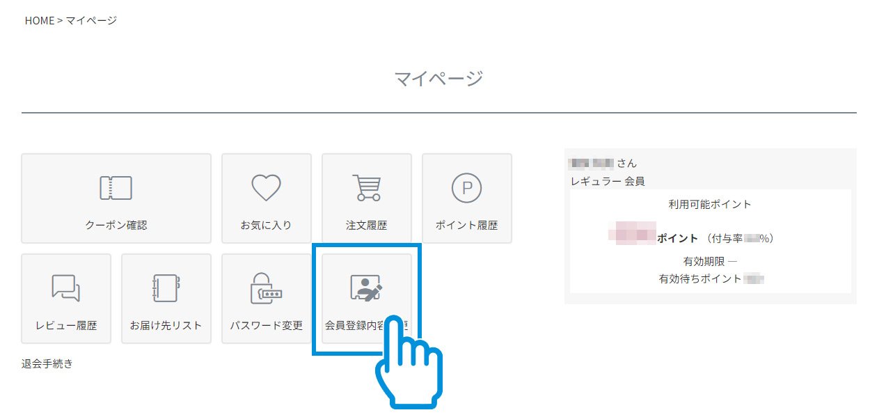 JVCケンウッドストア マイページの「会員登録内容変更」をクリック