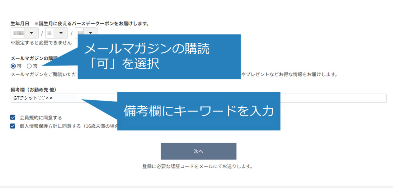 備考欄に「GTチケットR8」と入力し、次へをクリック