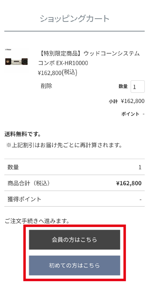 カートページからご注文手続きへ