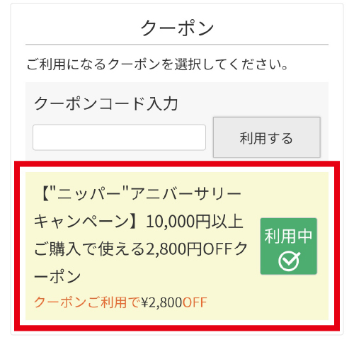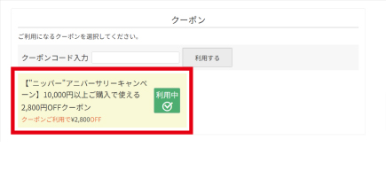 ご注文手続き画面にて、ご利用になるクーポンを選択