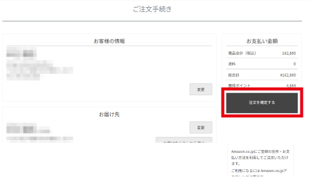 「注文を確定する」ボタンを押してご注文は完了です。