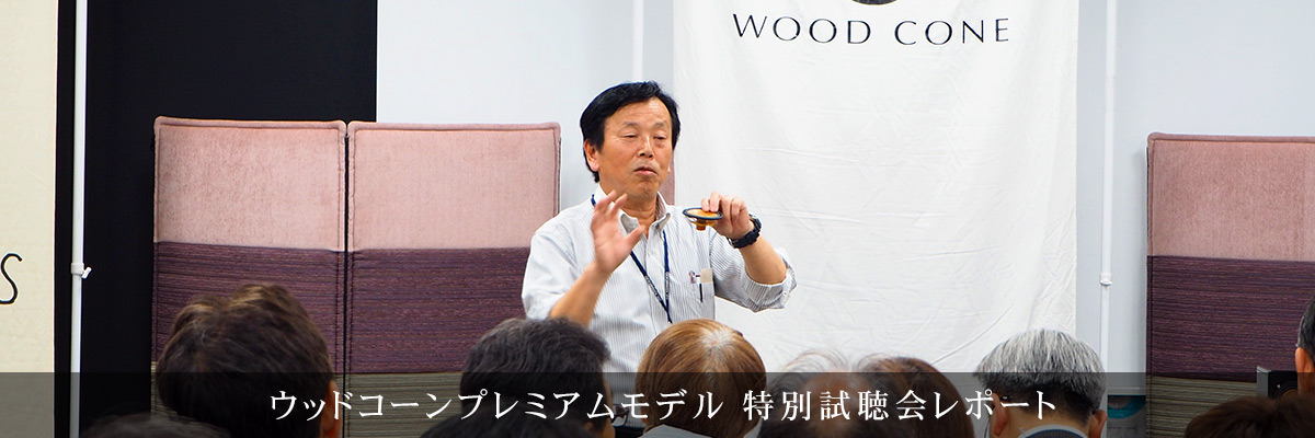 「ウッドコーンプレミアムモデルはこ公式オンラインストア限定モデルで、家電店様での商品取り扱いはございません。そのためお客様に実際にその音色を確かめていただけるよう、商品説明を交えたプレミアム試聴会を毎月1回程度実施しておりました。お客様に最高の満足を直接お届けし、末永くオーディオを楽しんでいただきたい・・・そんな思いのこもった、しかもアットホームな試聴会の様子をご案内いたします。